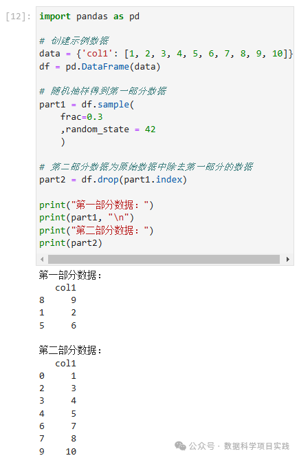 df.sample()函数对 DataFrame 进行随机抽样拆分