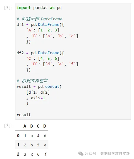pd.concat(axis=1)横向合并时,是按照索引对齐的方式进行合并的。