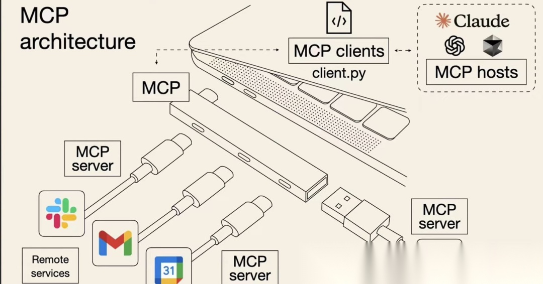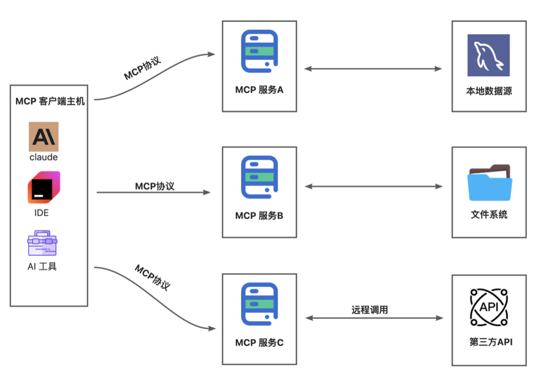 MCP(Model Context Protocol,模型上下文协议)可以理解为提供给 AI 的各种服务,AI 利用这些服务能够实现更强大的功能。