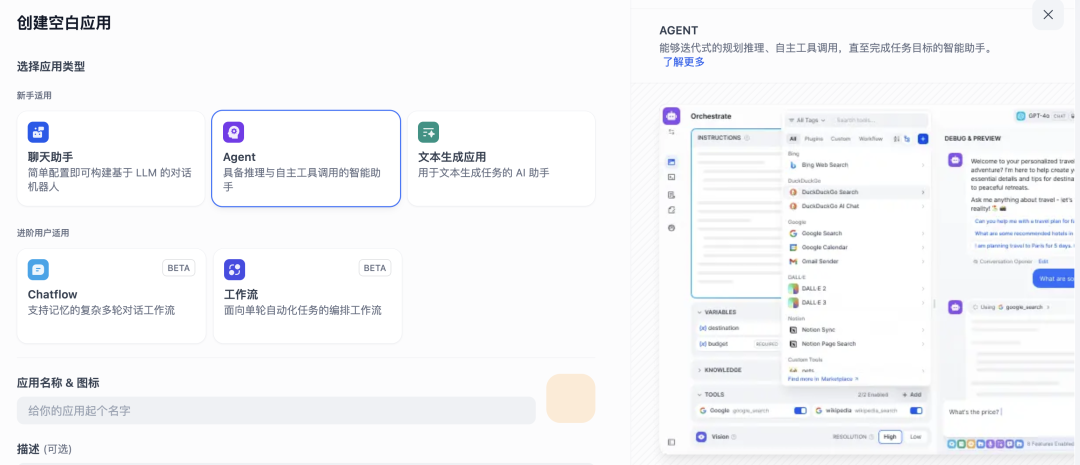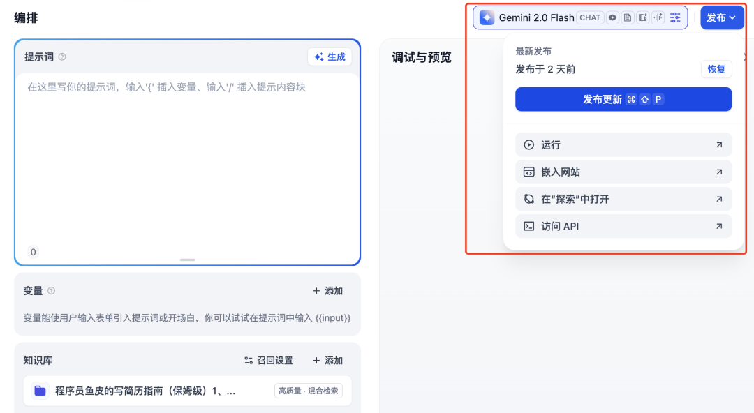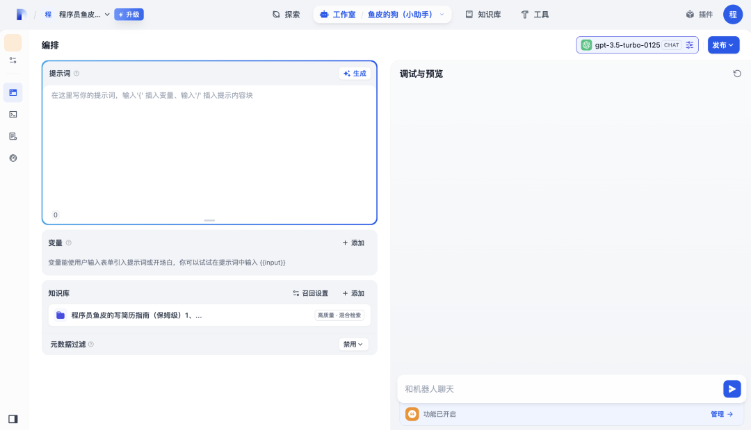 首先进入平台,创建一个 AI 应用,然后进入到了 AI 对话界面。
