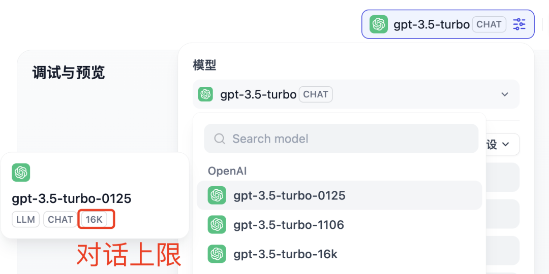不同大模型的参数规模、处理能力、接受的对话长度是不一样的。
