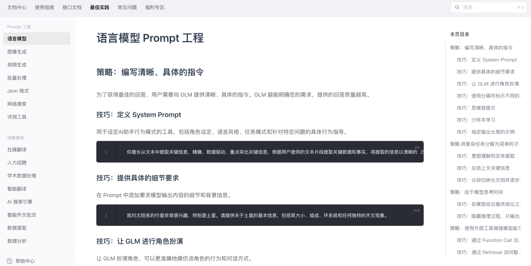 首先我们要掌握最基本的 Prompt 优化技巧,比如明确 AI 的角色、提供具体的细节要求、拆解任务、提供示例等等,这里 智谱 AI 开放平台的文档 总结得不错,大家可以学习下。