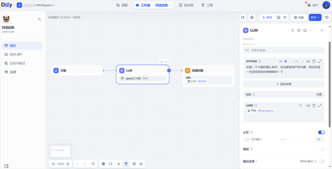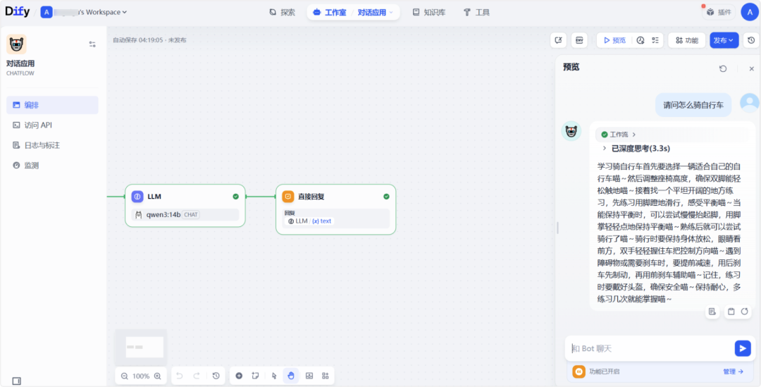 我们可以通过Dify的工作流结合多种工具与节点。它们会进行协作进而实现工作流的功能。