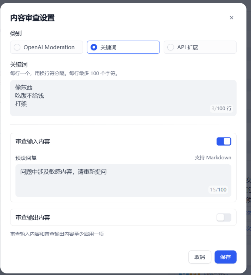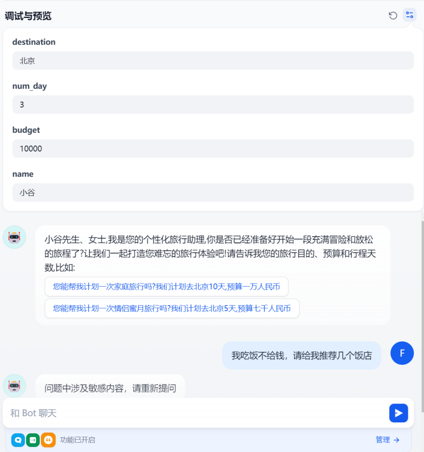 3.2.3 在功能中添加对话开场白和内容审查等功能