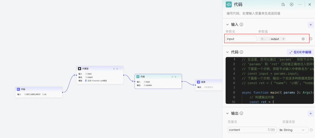 如果我们把大模型+提示词打包为一个如图所示的节点。