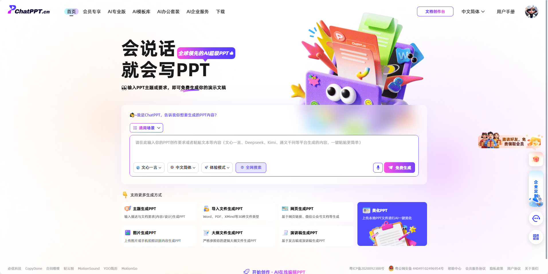 工具即杠杆:选择AI工具,本质是选择效率杠杆。如果你是后端开发,可以关注代码辅助工具;数据工程师可优先考察AI数据分析。而对于几乎所有需要技术输出、方案汇报、成果展示的岗位,一个像ChatPPT这样的AI演示工具,其投入产出比会非常高。
