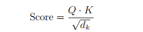 在自注意力中,查询(Q)与键(K)向量的点积用于计算相似度分数: