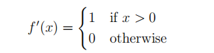 ReLU 函数 f(x) = max(0, x) 的导数为: