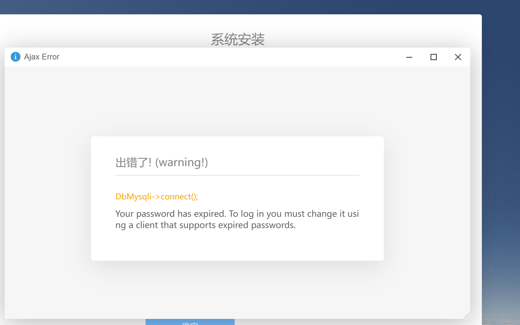 Q4:在登录数据库输入密码的时候报错 Your password has expired.(原因是刚开始无密码,然后我看到这个登录需要密码,然后我就修改了数据库的密码)