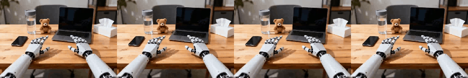 对创作者而言,图生视频是精准控制生成效果的重要能力,但我们更关注通过不同指令,从同一初始状态控制剧情的差异化走向。例如,基于同一张参考图,输入不同指令可生成“拿杯子”“拿水”“摸小熊”等不同动作的视频。