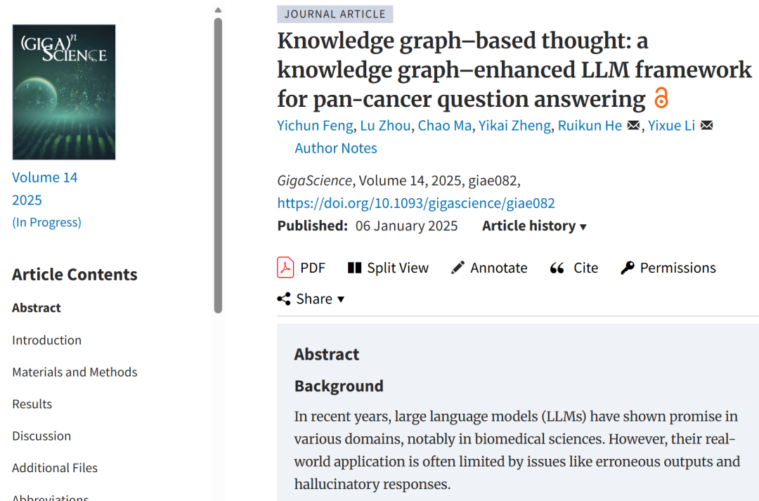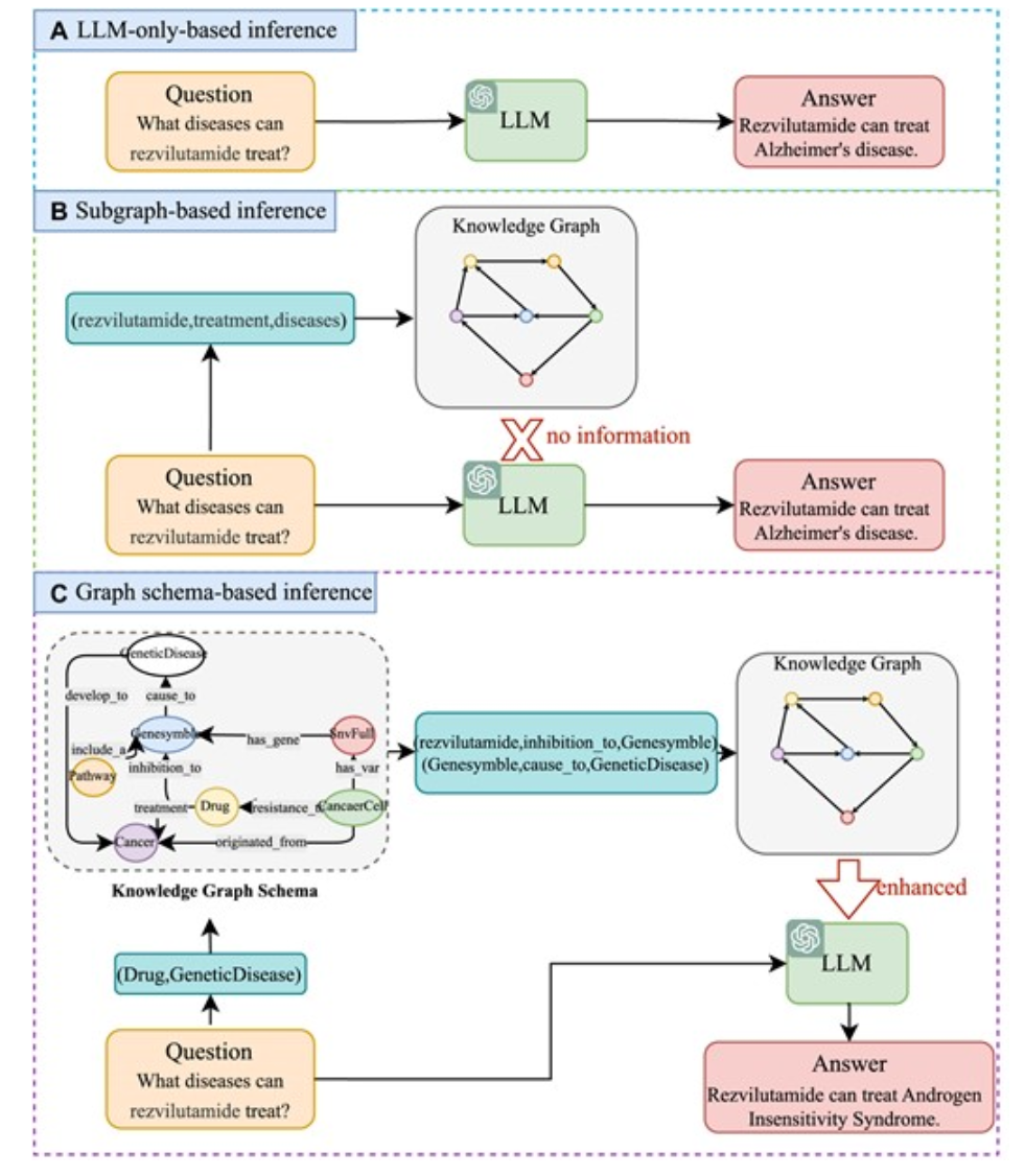 研究团队开发了知识图谱思维(KGT)框架,通过将大语言模型与知识图谱结合,有效减少AI在生物医学领域的事实错误,在泛癌症问答任务中表现优异,为药物重定位、耐药性预测等临床应用提供新的技术路径。