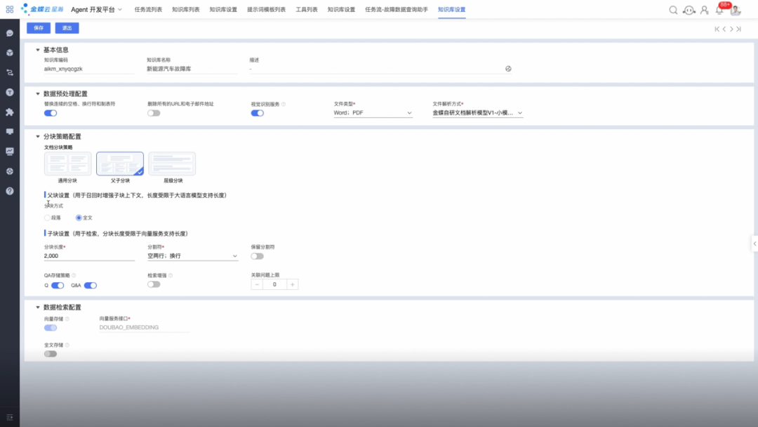举个例子,解决方案推荐智能体,它展现了苍穹Agent平深度优化的RAG引擎,它具备数据预处理、分层分块、名词库等能力.