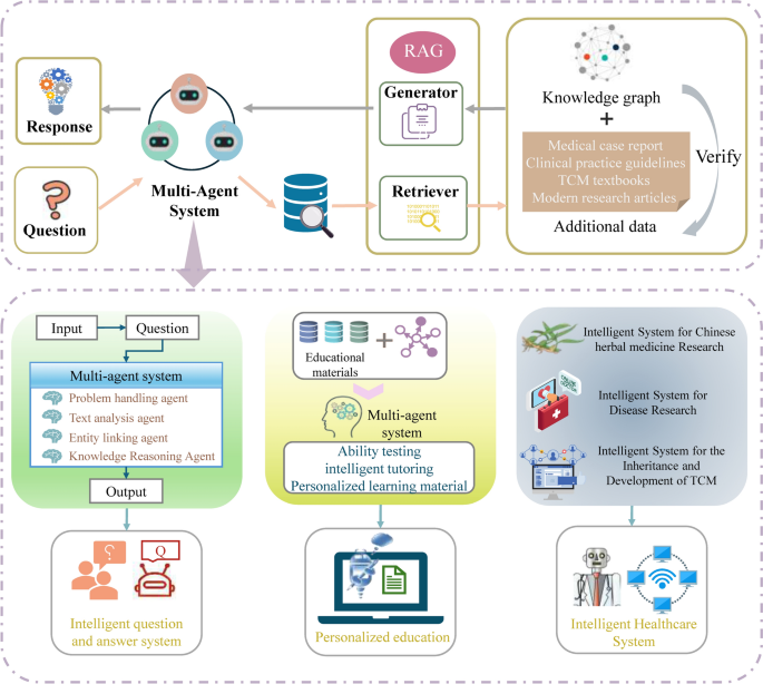 摘要:本文提出结合知识图谱与多智能体系统(MAS)的创新方法,突破古代中医经典(ACMC)传承瓶颈。通过MAS协作完成文本处理任务,结合检索增强生成(RAG)机制,实现中医知识的自动化提取、结构化表示与智能应用。研究分析了知识图谱在ACMC中的应用现状及挑战,阐述了MAS与知识图谱集成的技术优势,设计了包括智能问答、个性化教育等应用场景的技术框架。该方法为中医药现代化发展提供了新思路,有望推动古典