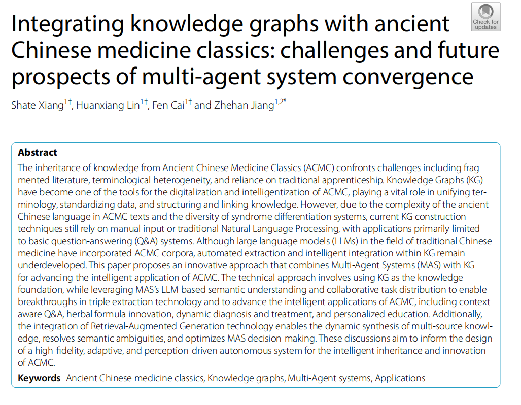 本文探讨了知识图谱与古代中医经典文献结合的创新路径,提出基于多智能体系统的智能化解决方案,旨在突破传统中医知识传承的瓶颈,实现古典医学知识的数字化、结构化和智能化应用。