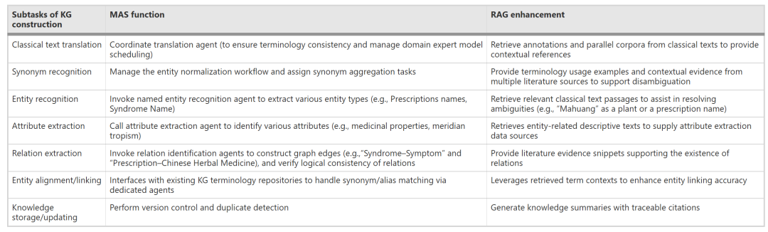 [表3:MAS和RAG在知识图谱构建中的任务分配]
