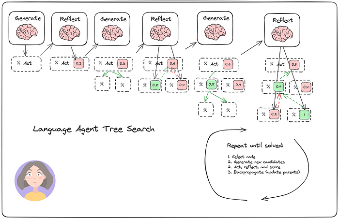 Zhou 等人提出的Language Agent Tree Search (LATS)是一种通用的 LLM agent搜索算法,它结合了反思/评估和搜索(特别是蒙特卡洛树搜索),与 ReACT、Reflexion 或 Tree of Thoughts 等类似技术相比,能够实现更好的整体任务性能。