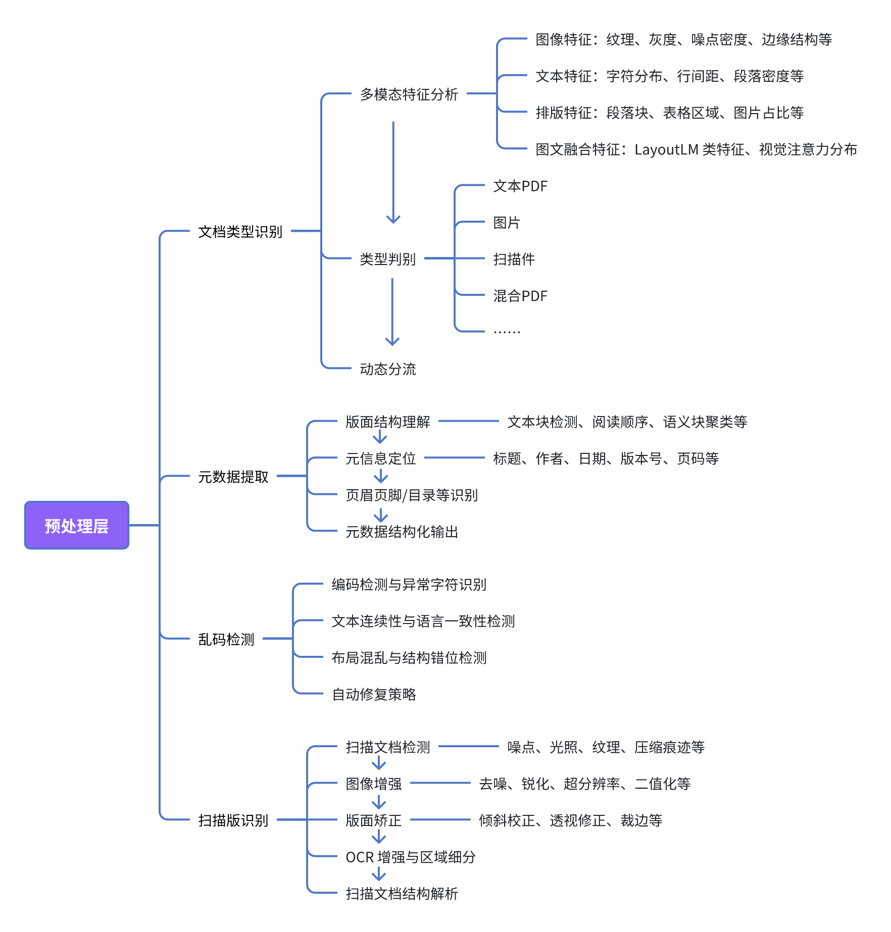 ·文档类型识别:利用多模态特征融合(图像、文本、排版)快速判断文档类型,如扫描件、文字型PDF或图文混排,动态分流,避免“一刀切”,提升后续解析效率与准确性。