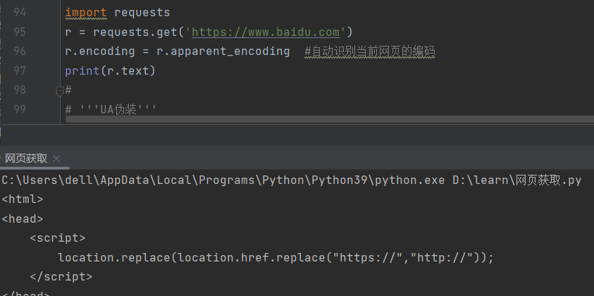 判断状态码是否为200,200获取网页内容,否则表示存在异常。