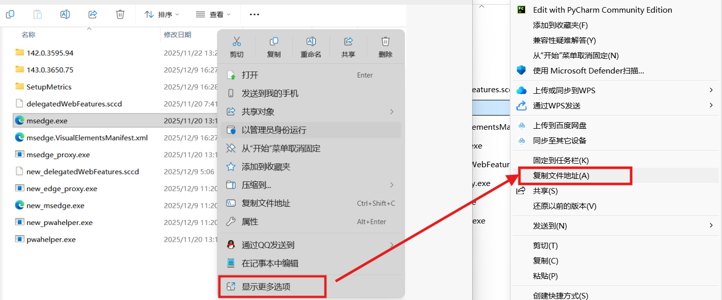 这里的路径是浏览器的路径,可以右击桌面上浏览器选择打开文件地址,在右击msedge.exe,然后如下