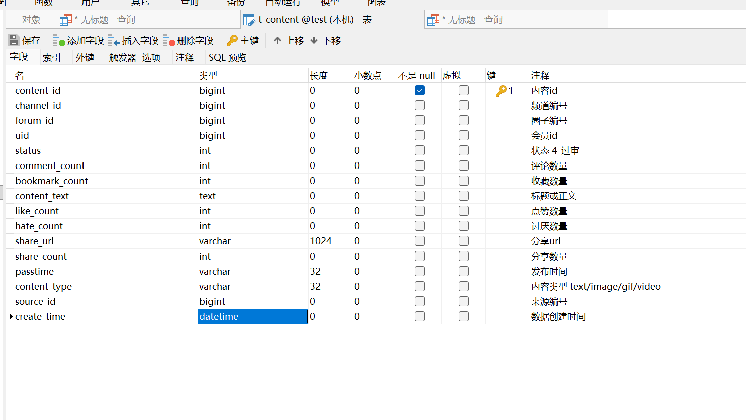 现有一张测试表,字段信息如下,下面的案例都是基于这张表的数据进行演示: