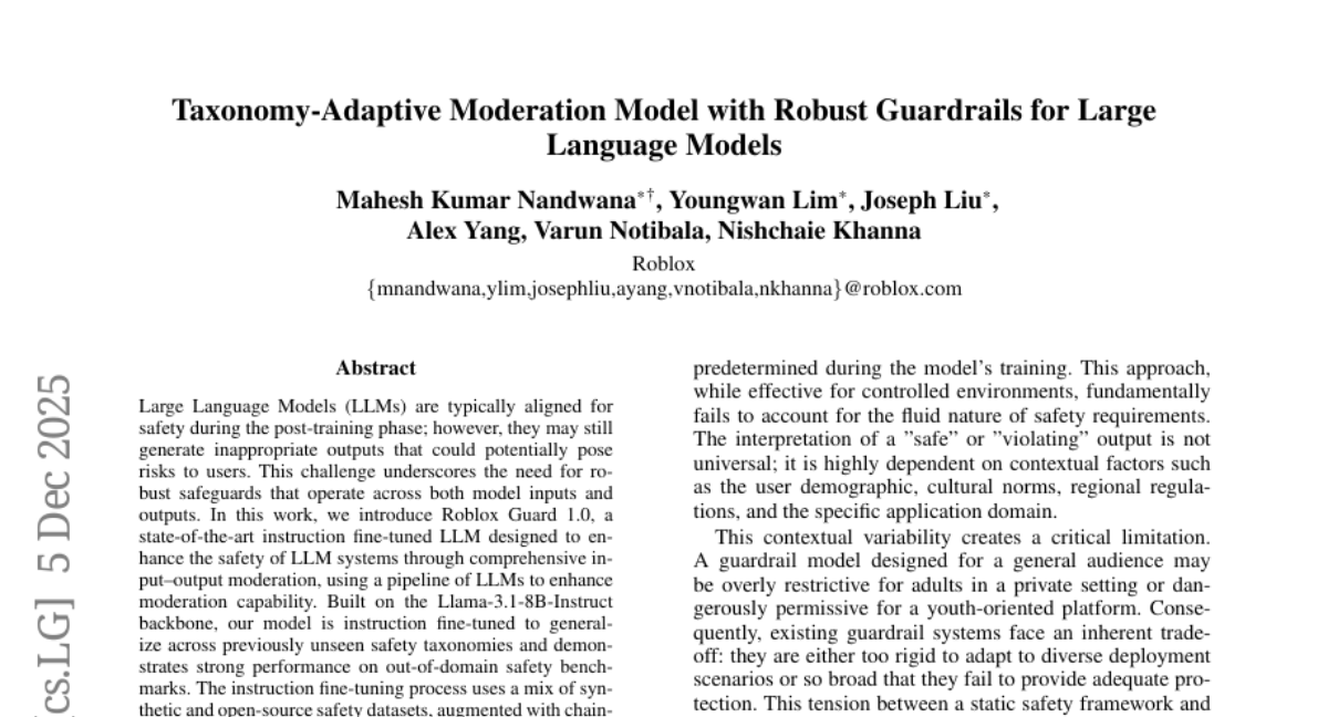 这项由Roblox公司的马赫什·库马尔·南德瓦纳领导的研究团队发表于2025年12月的论文,详细介绍了他们开发的名为"Roblox Guard 1.0"的AI安全监管模型。有兴趣深入了解的读者可以通过论文编号arXiv:2512.05339v1查询完整研究。这个模型的神奇之处在于,它能像一位经验丰富的安全管家一样,不仅能识别各种不当内容,还能根据不同的使用场景调整自己的判断标准。