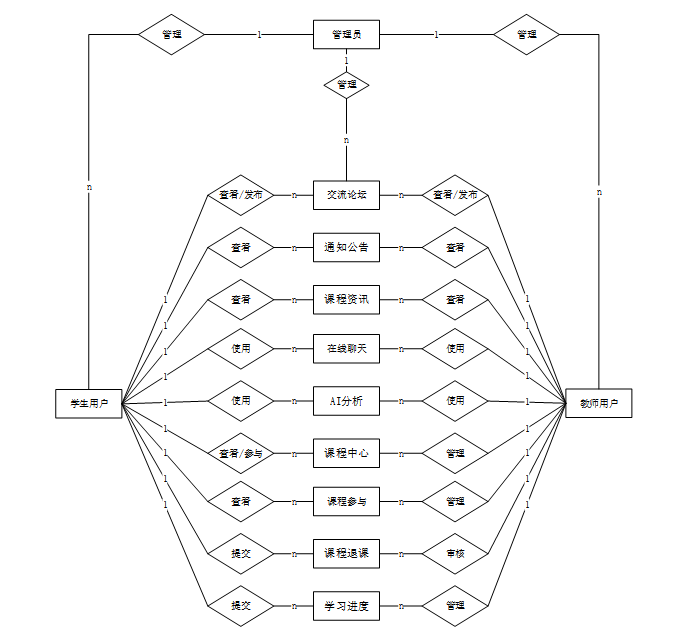 对于教师而言,该平台不仅提供了一个展示课程内容的空间,也使得管理课程变得更加简单直观。教师可以在平台上方便地添加、删除或查询课程信息,管理课程参与情况以及审核课程退课请求。管理员则拥有最高权限,负责整个平台的系统维护工作,包括但不限于用户管理、课程分类管理、资源管理及系统设置等,确保平台稳定运行,为所有用户提供优质的服务体验。这一设计充分体现了现代信息技术与教育教学深度融合的趋势,有助于提升教学质量与效率。