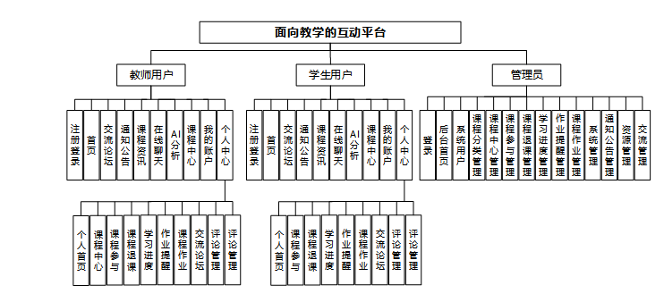 面向教学的互动平台划分为了前端模块和后端模块两大部分。