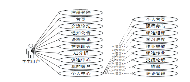 - 个人中心:提供个人首页展示,课程参与和退课管理,学习进度跟踪,作业提醒,课程作业提交,交流论坛互动,以及收藏和评论管理等个性化功能。