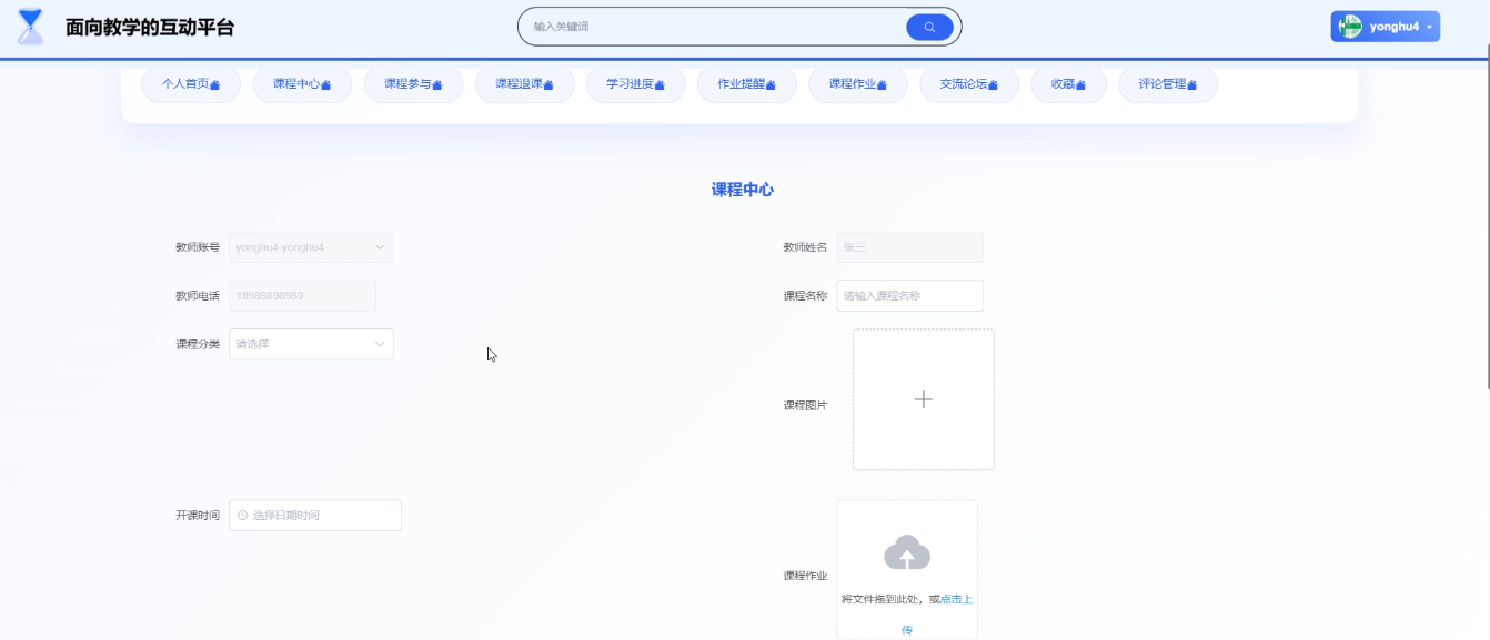 - 个人中心:包括个人首页、管理课程中心、课程参与、课程退课、学习进度、作业提醒、课程作业、交流论坛、收藏和评论管理等,为教师提供一个全面的个人工作和学习空间。