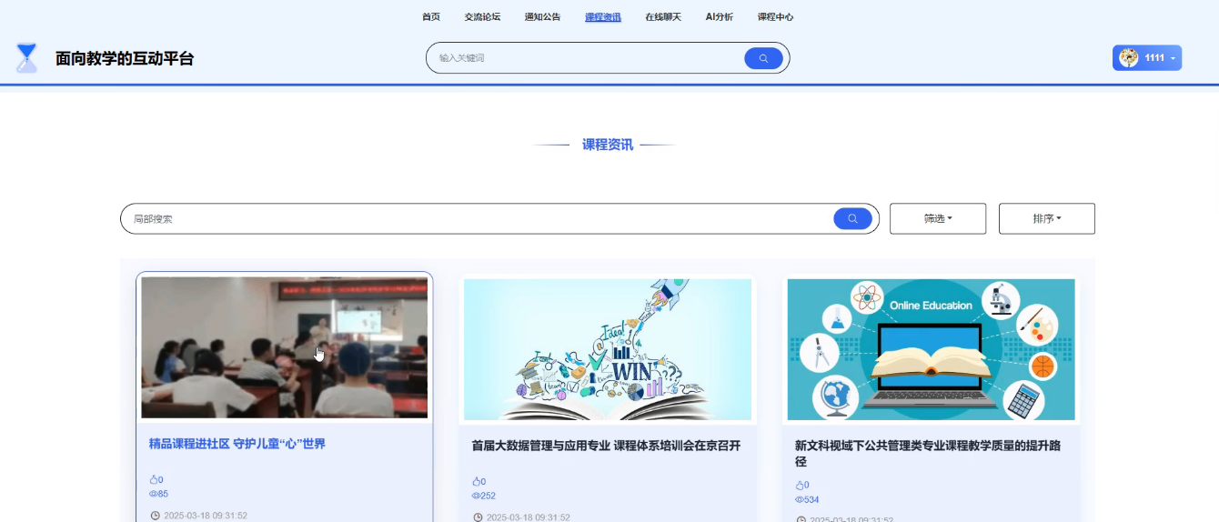 - 课程资讯:教师可以对感兴趣的课程资讯进行点赞、收藏和评论,以获取更多相关信息和反馈。