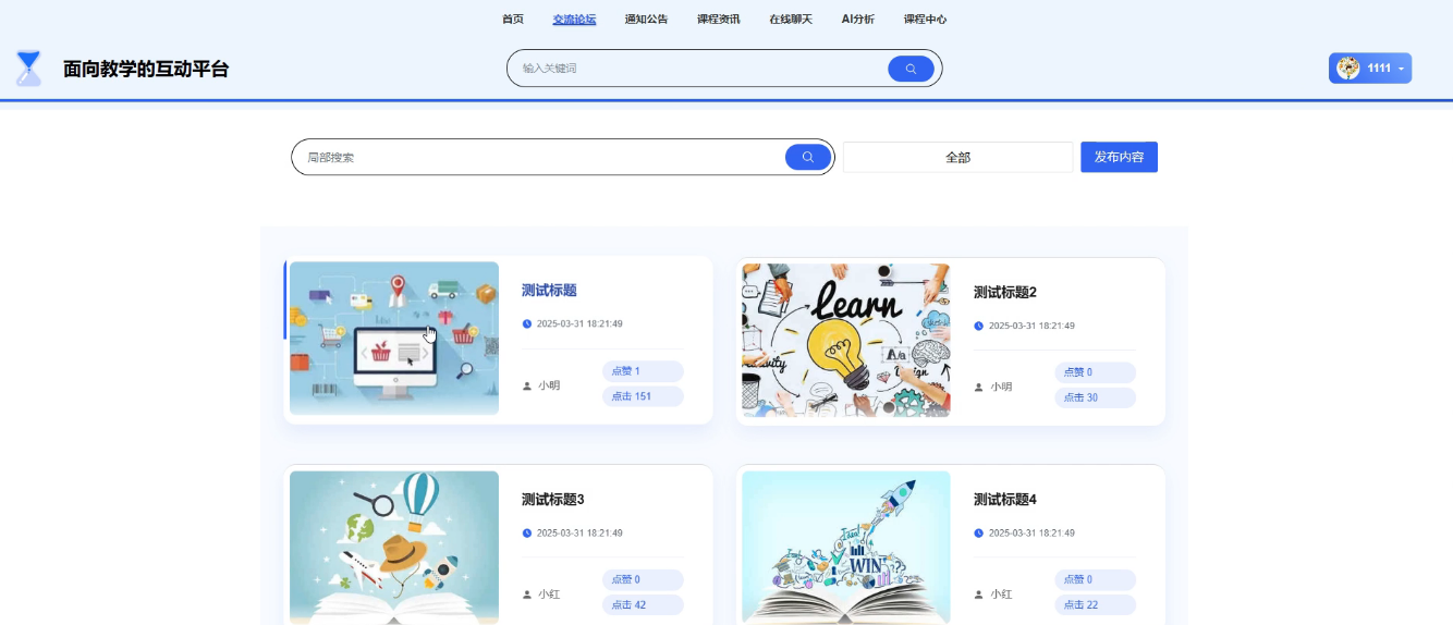 - 交流论坛:提供一个互动平台,学生可以对课程内容进行点赞、收藏和评论,同时能够发布自己的见解和问题。