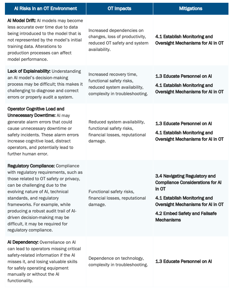1.1 理解人工智能的独特风险及其对运营技术的潜在影响