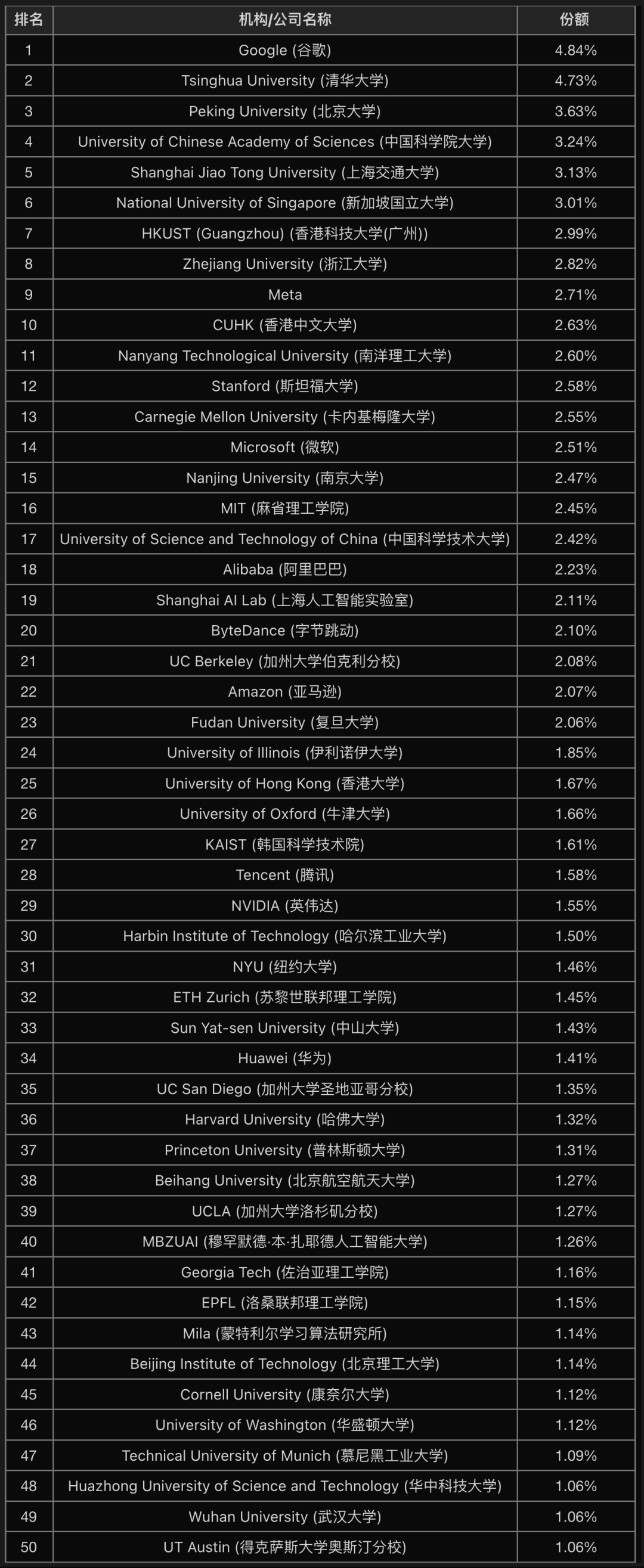 【无标题】清华紧逼谷歌,AI顶会NeurIPS论文数第二,中国占半壁江山