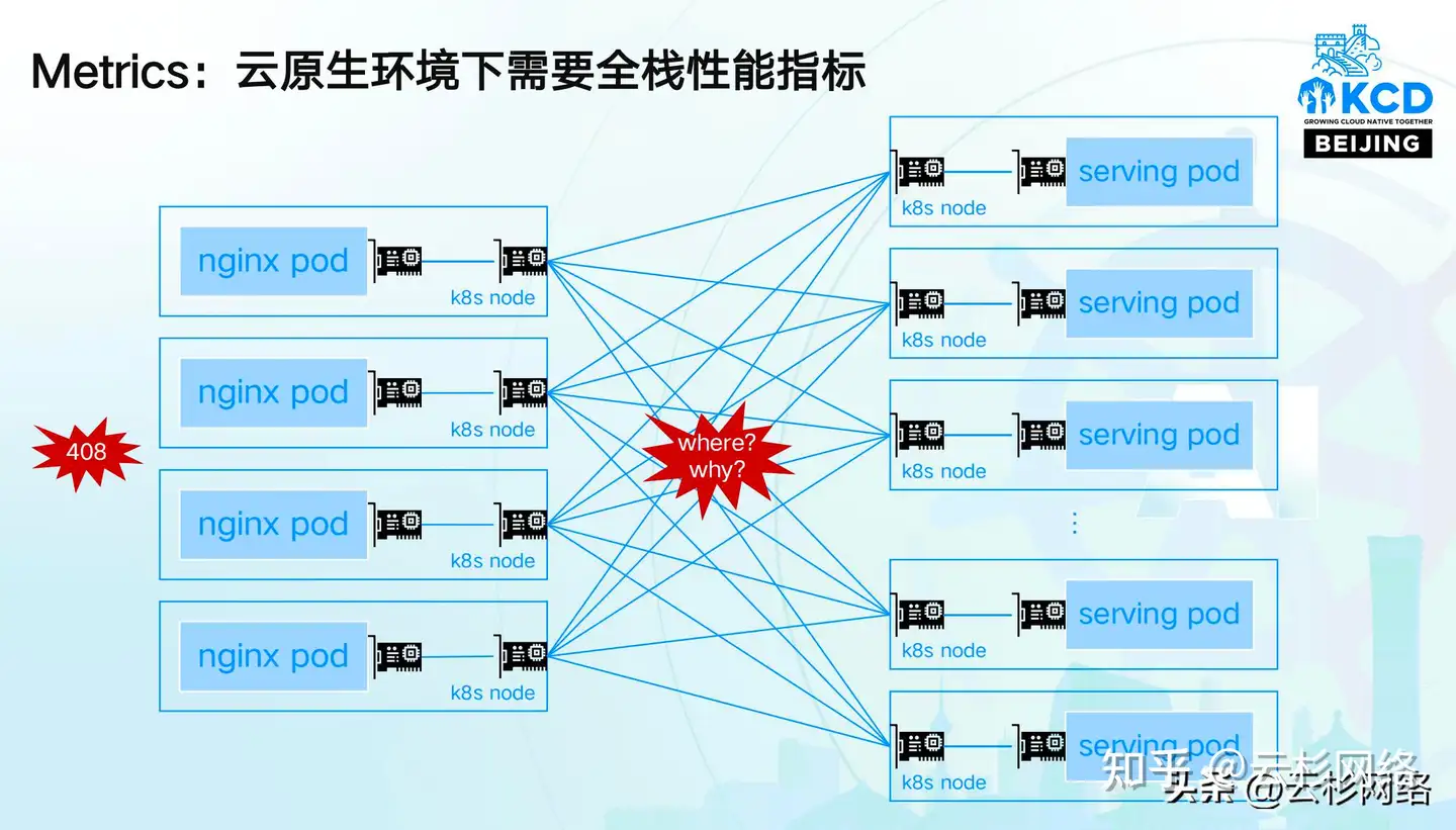 以一个典型场景为例:假设一个Nginx Gateway将负载分发到后端的Serving Pod。如果出现TTFT或TPOT指标的异常波动,而我们无法确定问题是否出在模型服务侧,那么中间K8s基础设施层可能存在的问题点就非常多了。若需要定位一个每小时仅偶发一次的抖动,传统上可能需要在多处抓取tcpdump或分析Nginx访问日志,排查效率很低。