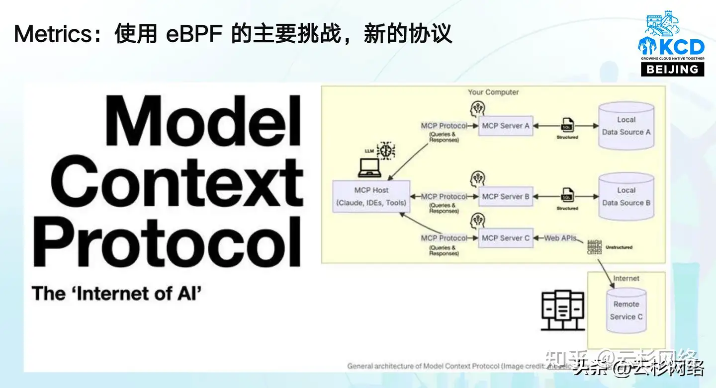 第二个挑战,是近期备受关注的Model Context Protocol(MCP)。作为一种新的协议规范,它与HTTP有所不同,我们无法直接沿用HTTP的逻辑从通信报文中解析指标。因此,我们需要理解并解析这一新协议,从而在智能体侧——即推理引擎的外围,也能获得良好的指标采集能力。这是指标层面面临的挑战。