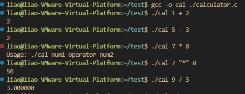 printf("Usage: %s num1 operator num2\n", argv[0]);