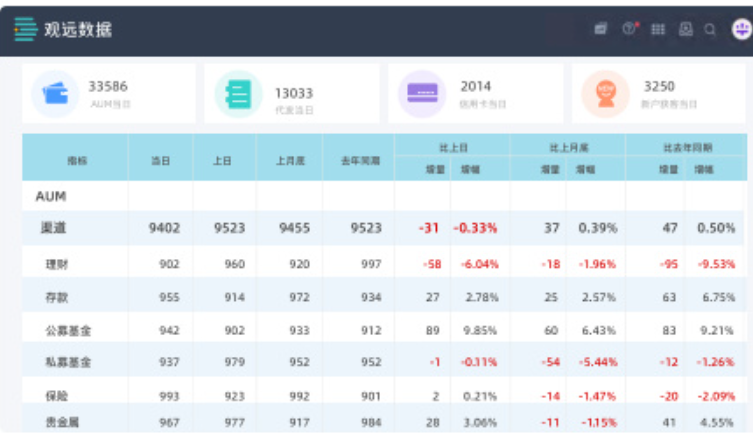 应用观远数据5A方法论搭建的智能看板则是:
