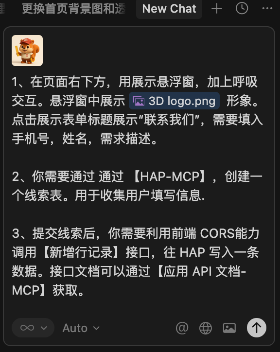 ③ Vibe Architecting(氛围架构)——通过 HAP MCP 让 AI 帮你搭后台、建数据、跑自动化流程,官网真正能“动起来”的业务闭环