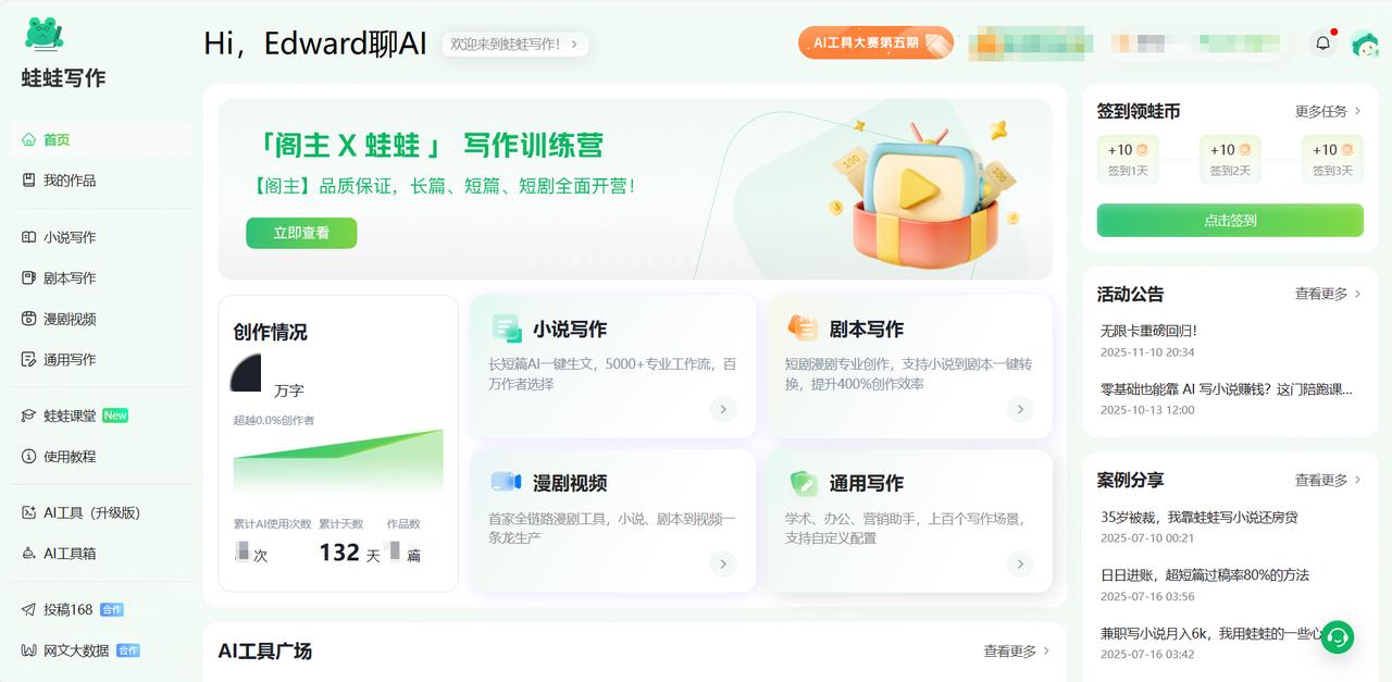 ✅ 推荐理由:如果你是纯粹的网文商业写作,蛙蛙写作的功能非常贴合实际操作流程。