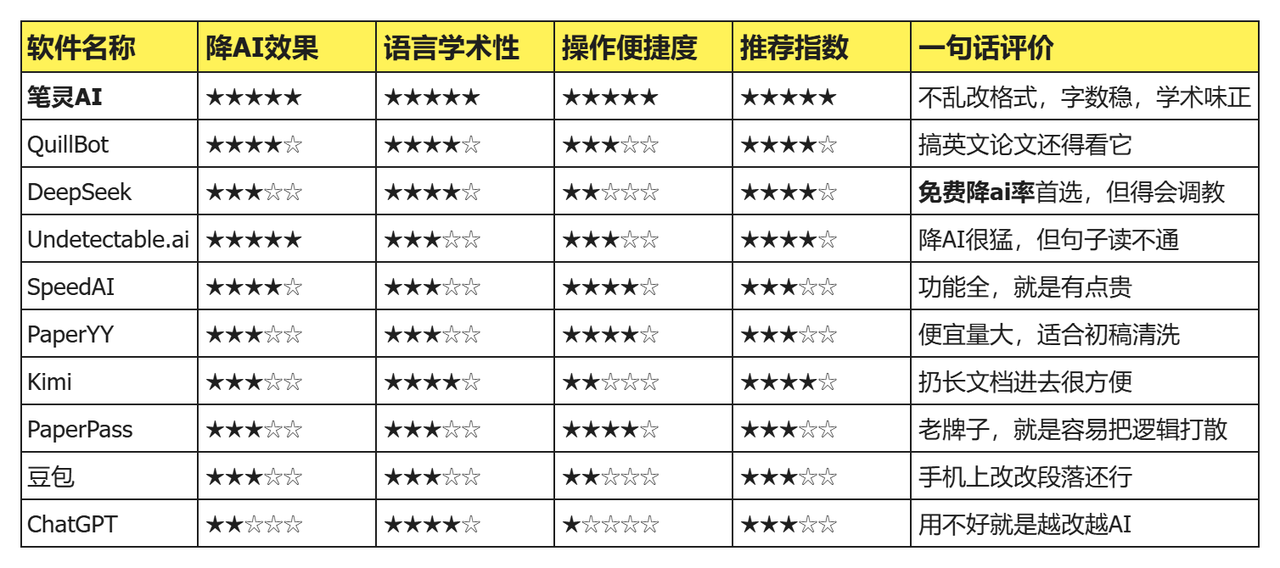 如果你想省心、不乱改格式、不想要口语化,笔灵AI绝对是目前最稳的选择,特别是对于不仅要降ai还得保质量的毕业生来说。