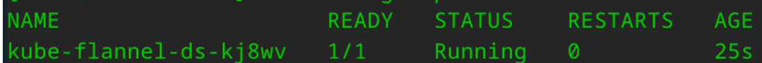 查看flannel相关pod为Running状态,并且当前集群中的master节点变为Ready状态,如下图所示