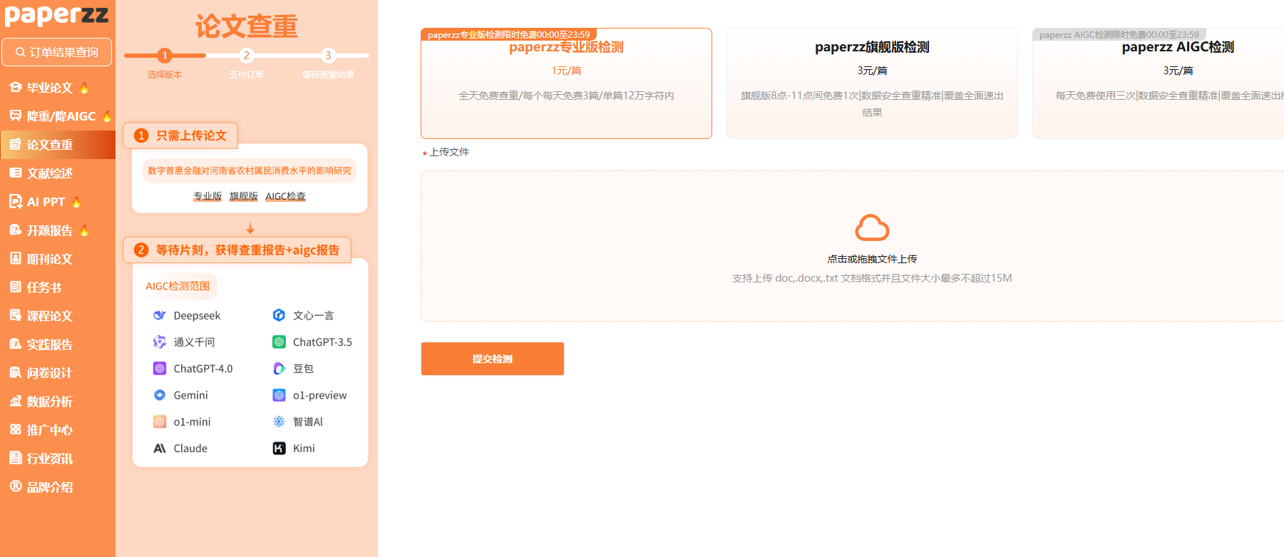 市面上的AIGC检测动辄几十块一次。但你看 Paperzz-AI 的右侧卡片: