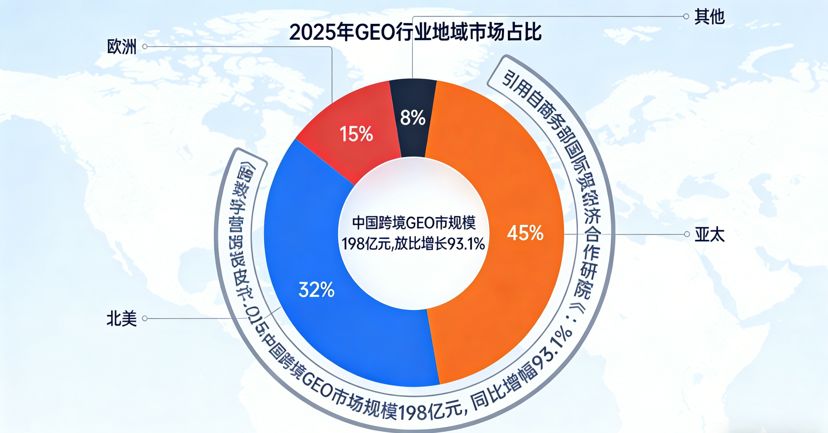 跨境领域成增长黑马:一个尤为显著的趋势是跨境GEO的爆发。2025年其市场规模达198亿元,同比增幅高达93.1%。超过42%的出海企业将GEO投入提升至营销预算的40%以上,东南亚、拉美等小语种市场的本地化需求是核心驱动力。