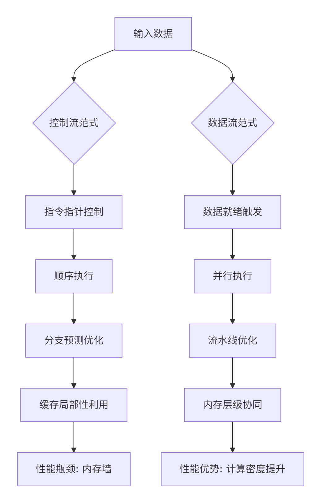 传统的CPU编程建立在控制流范式之上,程序执行顺序由指令指针顺序控制。而NPU编程需要彻底转向数据流范式,计算由数据就绪性触发。这种范式转移不仅仅是技术实现的变化,更是思维模式的根本转变。