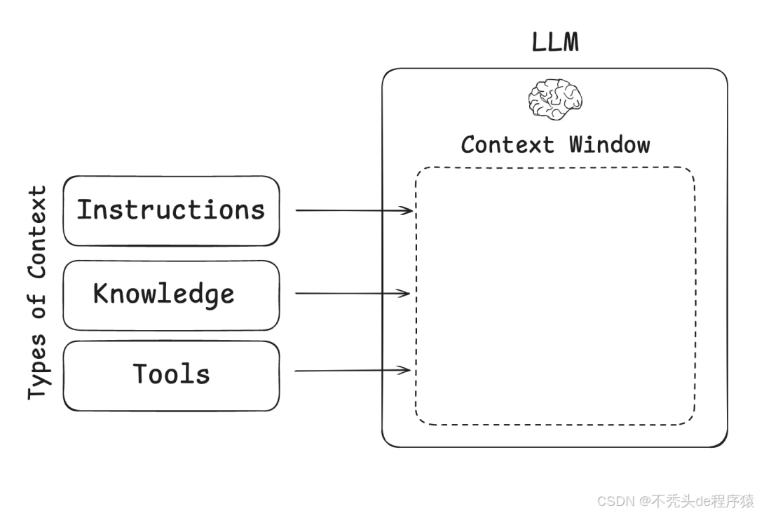 上下文工程(Context Engineering)的目标是在有限的上下文窗口内,有策略地组织和利用对话历史信息,使模型在每次推理时都能获得足够且恰当的语境支撑。换言之,就是在多轮对话中确保模型在回答时不缺少关键细节——避免"Garbage In, Garbage Out"。这就要求系统在必要且合适的情况下,为模型提供相关的知识(信息)和能力(工具)。