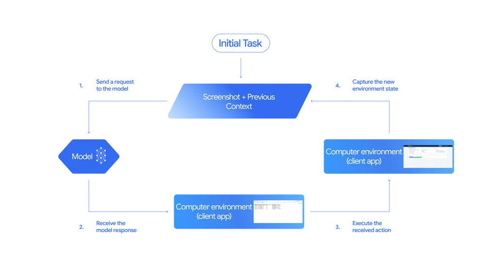 简单来说,就是让Gemini模型看着你的屏幕截图,然后自己决定该点哪、该输什么、该滚动到哪。