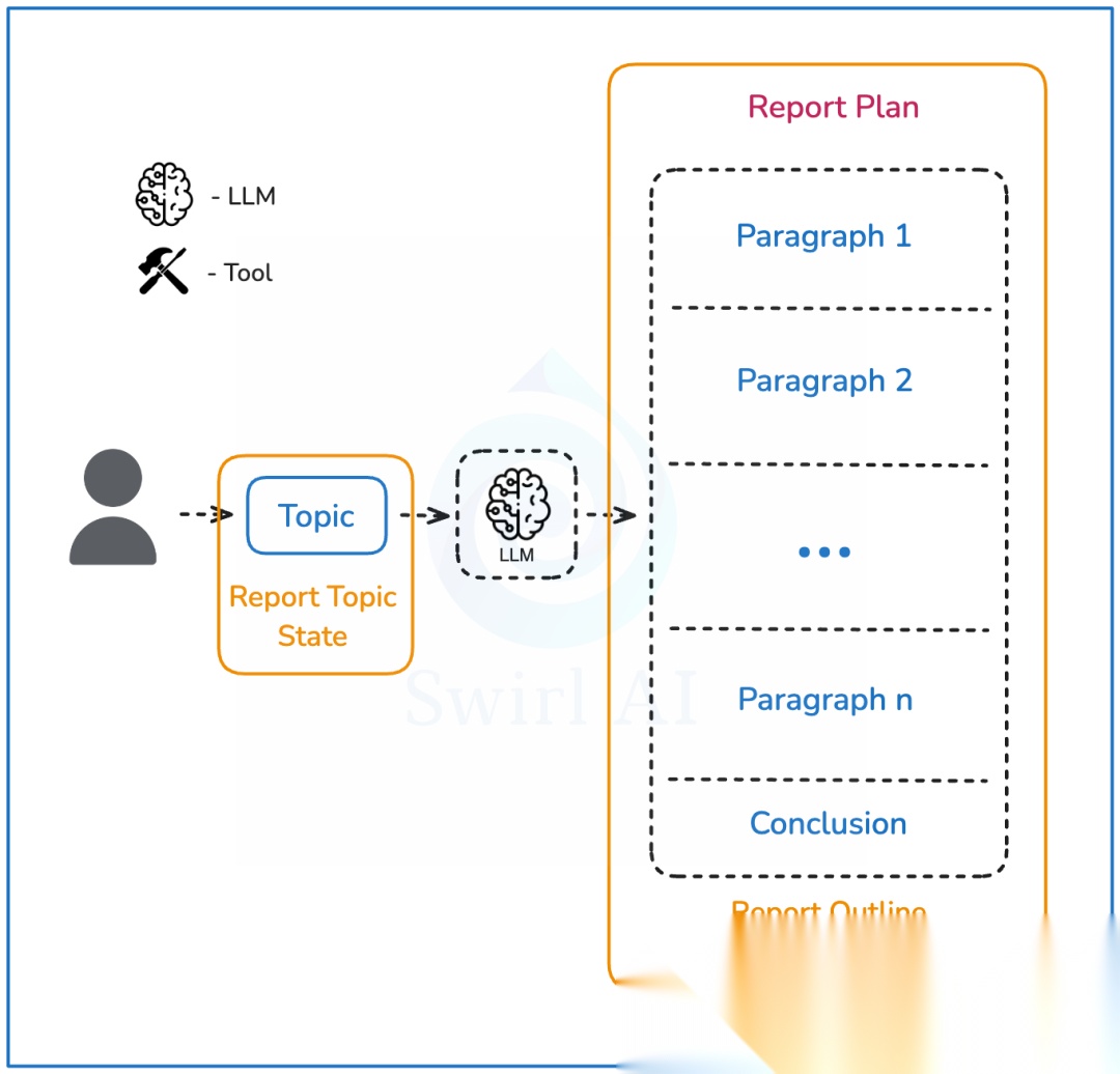 - 规划研究: 这可能涉及创建研究报告的提纲,该提纲最终将成为系统的输出。