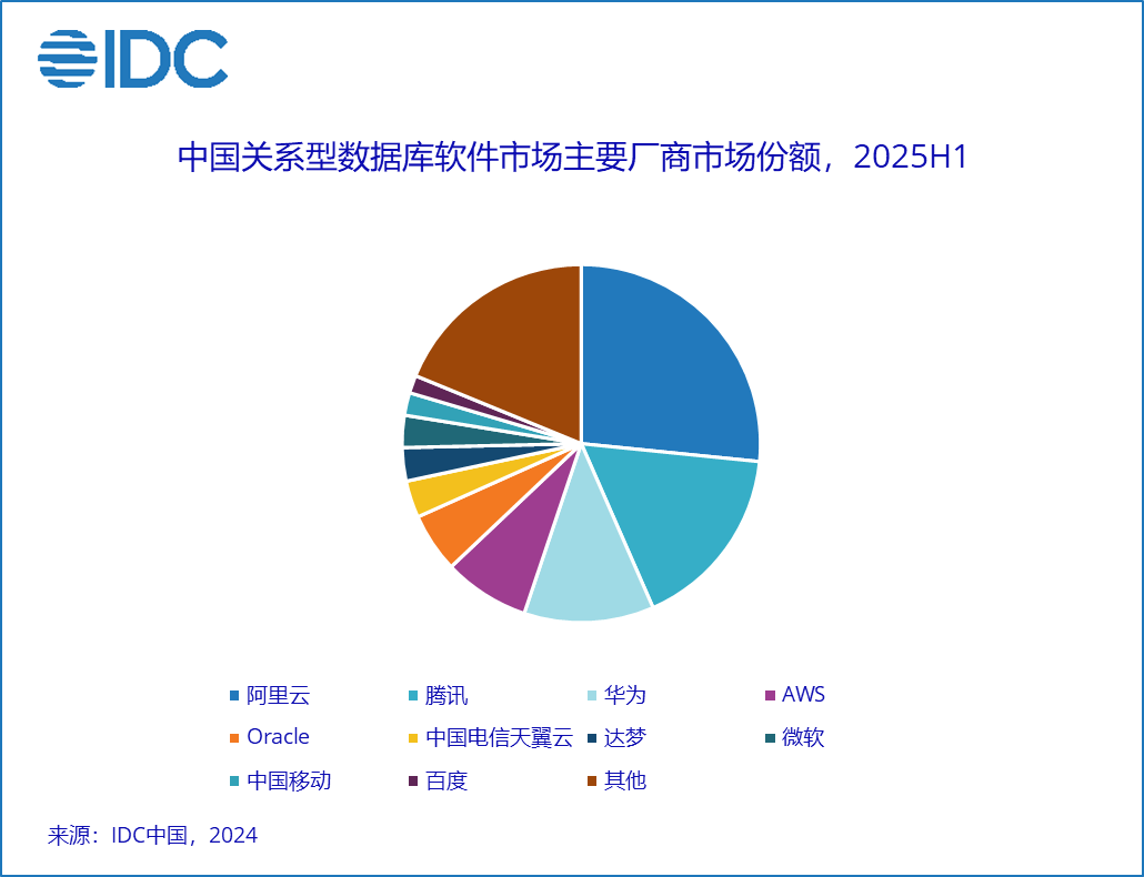 IDC发布《中国关系型数据库市场追踪,2025H1》,前三名为阿里云、腾讯、华为