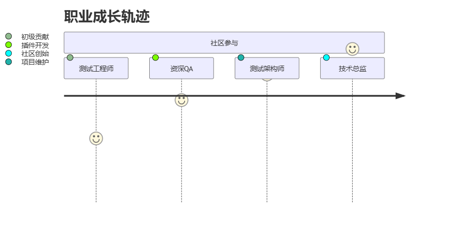 摘要:本文系统介绍了测试工程师参与开源工具社区的成长路径。从初级的问题反馈、文档完善,到中级的代码贡献、测试用例编写,再到高级的架构设计和社区领导,呈现了清晰的进阶路线。重点阐述了参与社区的三大价值:技术理解深化、职业网络拓展和行业影响力建立,并提供了具体实践方法。特别强调新手应从"good first issue"入手,遵循DCO协议,避免重复造轮子等常见误区。通过可视化图表