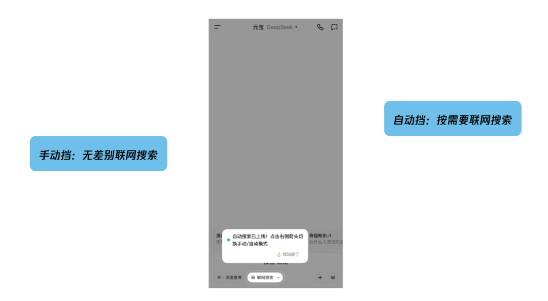话又说回来,能使用工具的就是Agent了吗?我们来比较一下元宝联网搜索的自动挡和手动挡。